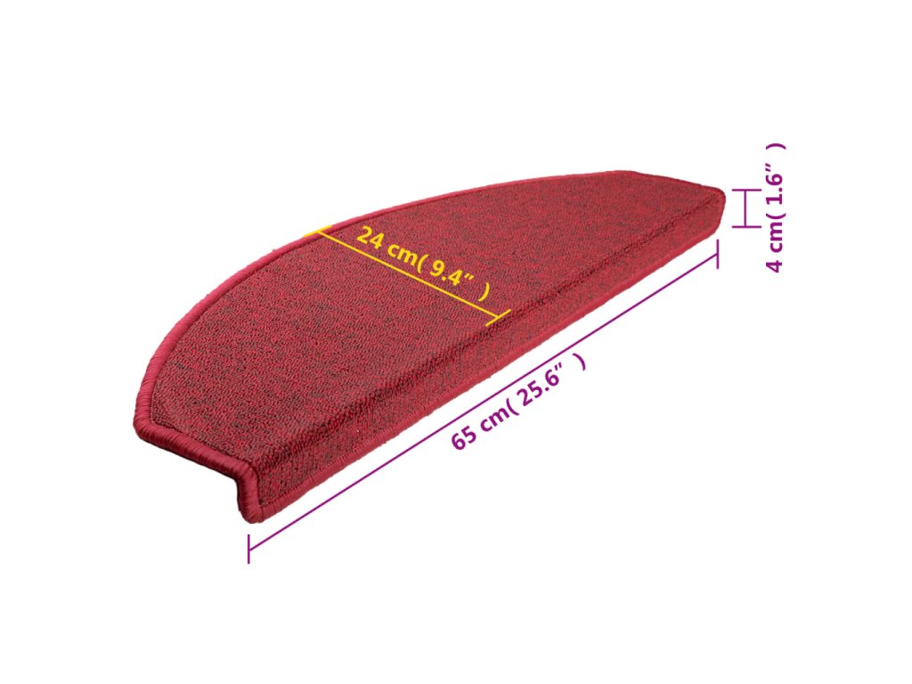 Schodové rohože 10 ks 65 x 24 x 4 cm červené půlkulaté velké 149761