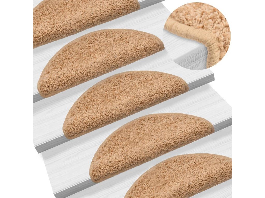 Schodové rohože 15 ks 56 x 17 x 3 cm béžové, půlkulaté 133894