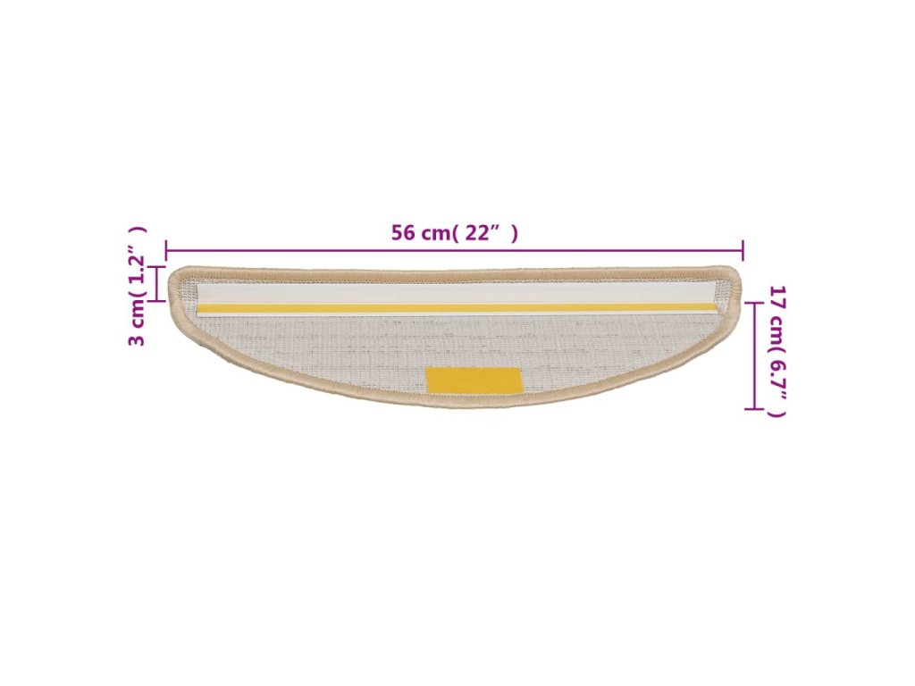 Schodové rohože 15 ks 56x17x3 cm krémové, půlkulaté 133896