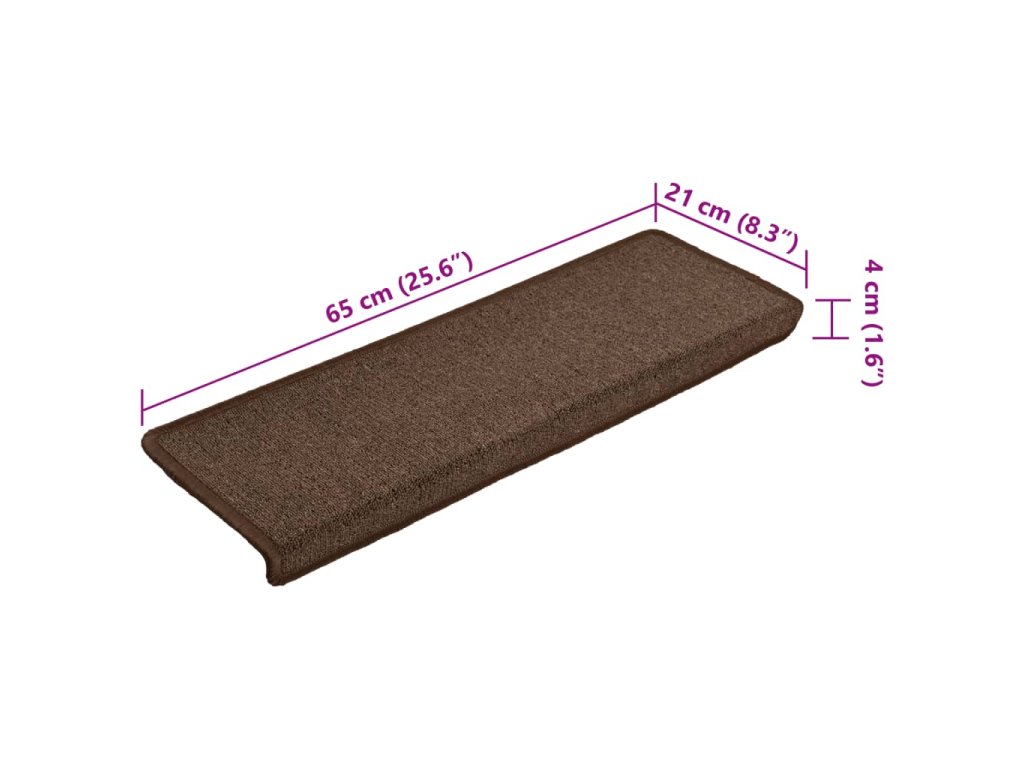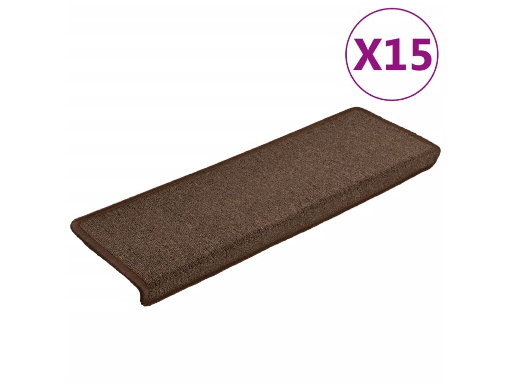 Schodové rohože 15 ks 65 x 21 x 4 cm hnědé s obdélníkovým okrajem 134571