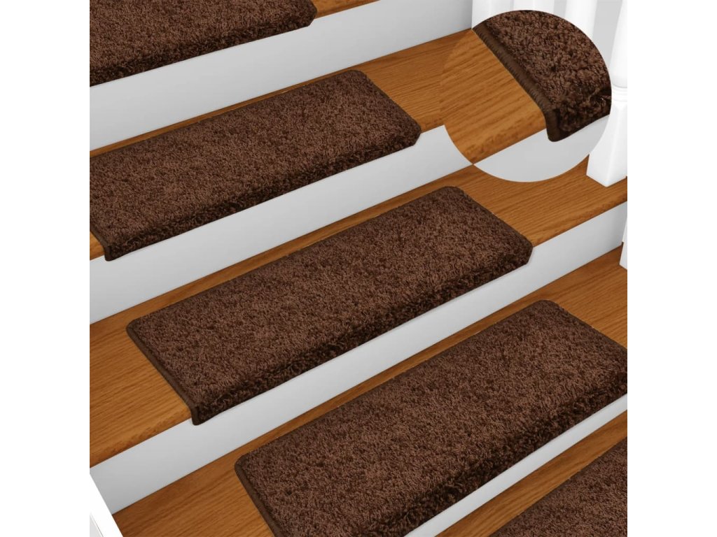 Schodové rohože 15 ks 65 x 21 x 4 cm hnědé s obdélníkovým okrajem 134578
