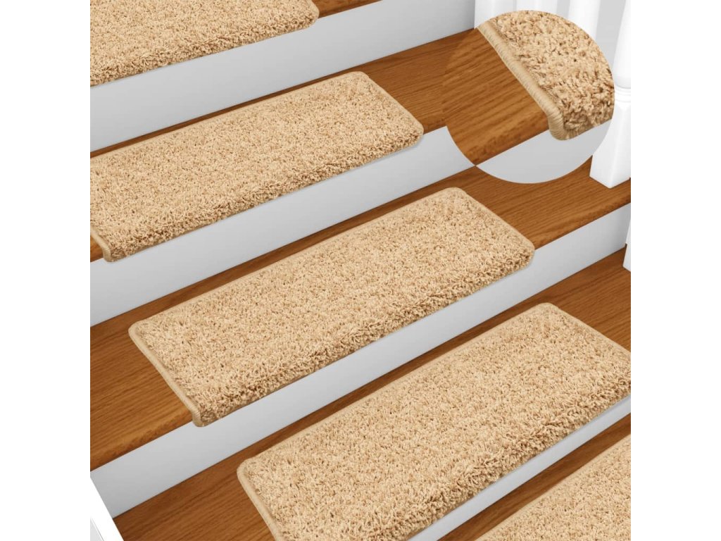 Schodové rohože 15 ks 65 x 21 x 4 cm krémové s obdélníkovým okrajem 134579