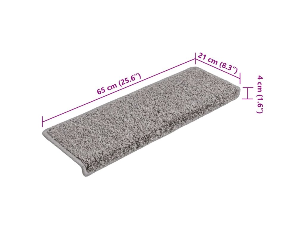 Schodové rohože 15 ks 65 x 21 x 4 cm šedé s obdélníkovým okrajem 134575