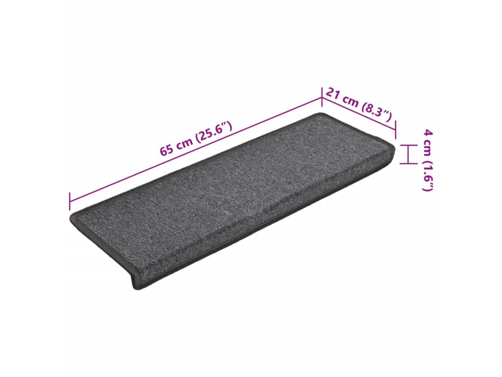 Schodové rohože 15 ks 65 x 21 x 4 cm tmavě šedé s obdélníkovým okrajem 134568