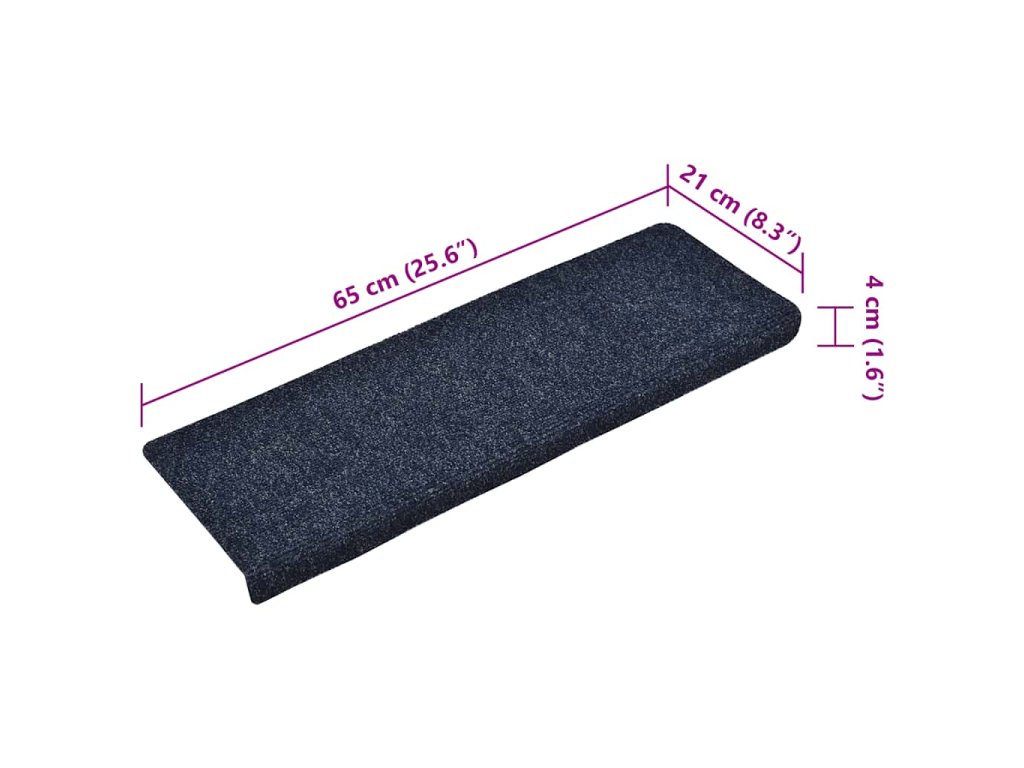 Schodové rohože samolepicí 15 ks 65 x 21 x 4 cm modré s obdélníkovým okrajem 134566