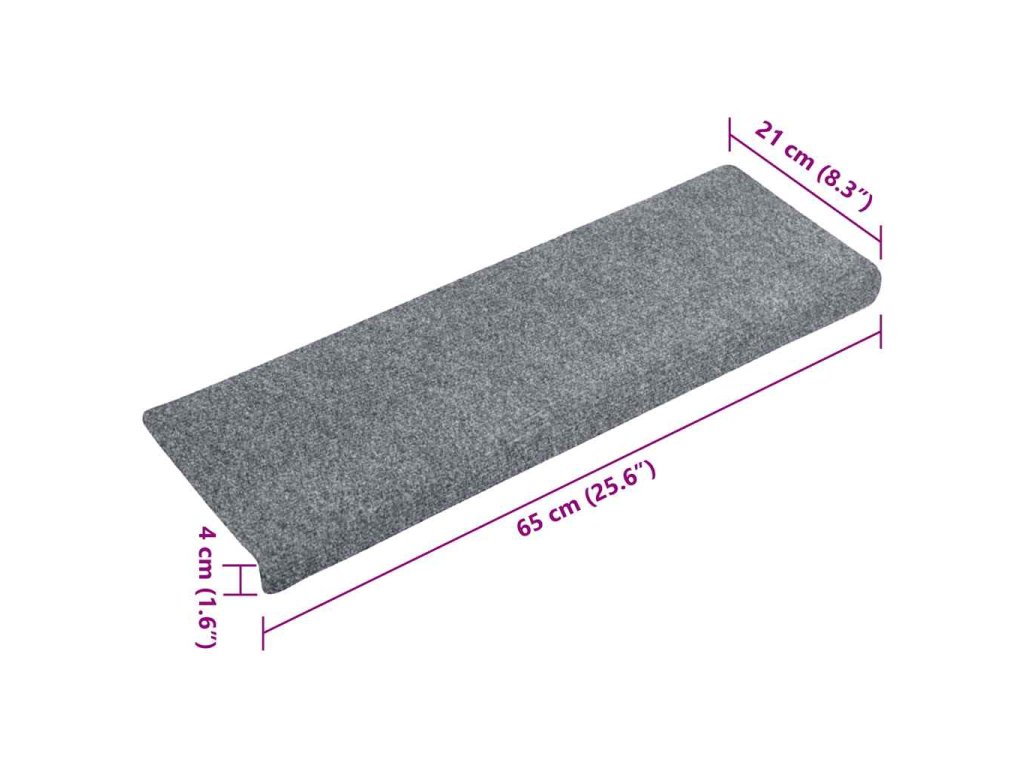 Schodové rohože samolepicí 15 ks 65 x 21 x 4 cm světle šedé s obdélníkovým okrajem 134564