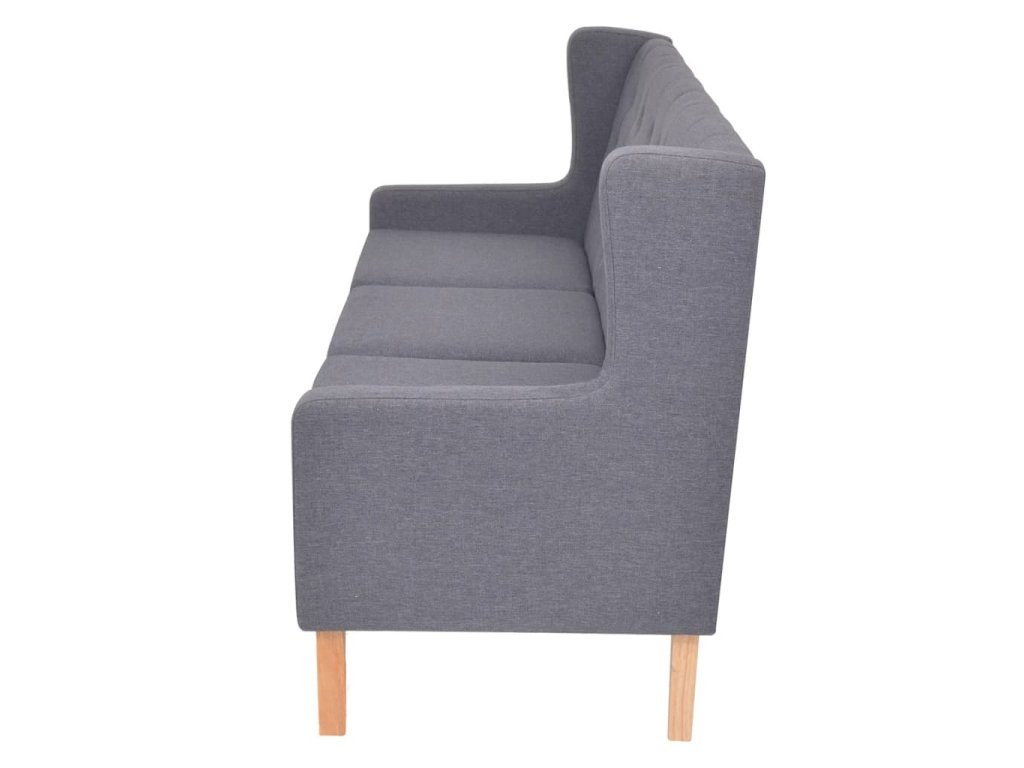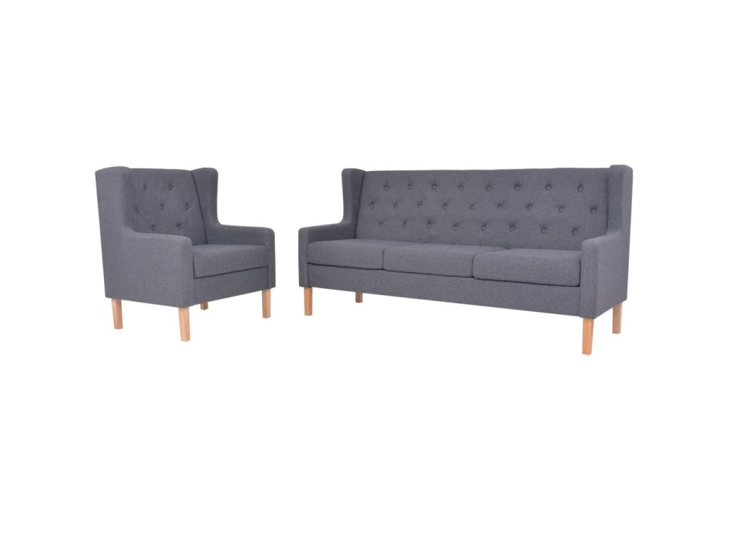 Sedací souprava je čalouněná jemnou polyesterovou tkaninou a polstrovaná molitanem, takže je velmi pohodlná. Sedací souprava má masivní dřevěný rám, je tedy stabilní a odolná. Montáž je velmi snadná.