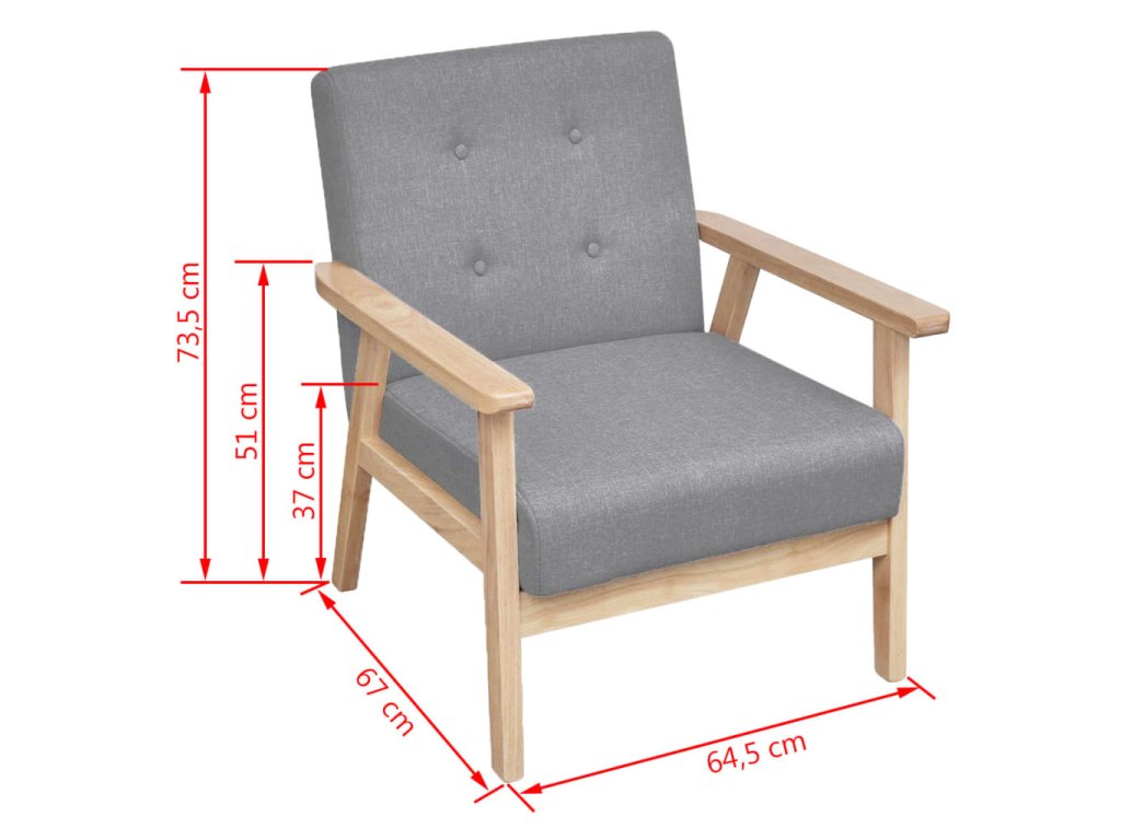 Vzhledem k vysoce kvalitním dřevěným rámům jsou křeslo a pohovka poměrně stabilní a odolné. Se svým nenápadným retro designem bude sedací souprava vyhovovat jakémukoli vybavení obývacího pokoje / jídelny.