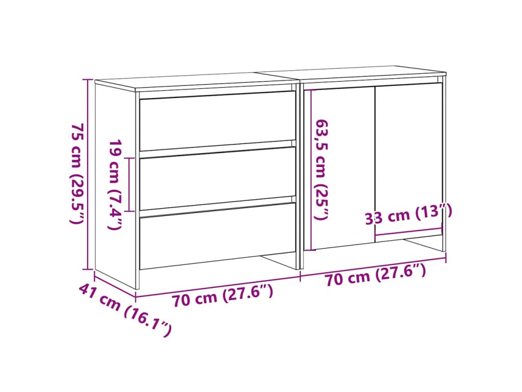 - Doporučené použití: Ideální do jídelny nebo obýváku, komoda nabízí flexibilní úložiště pro různé domácí potřeby, od nádobí po rámečky na fotky. Všestranný design se hodí do jakéhokoli pokoje a pomáhá udržovat pořádek.
