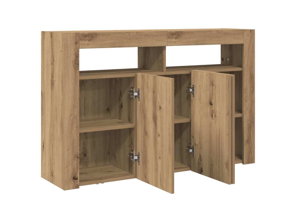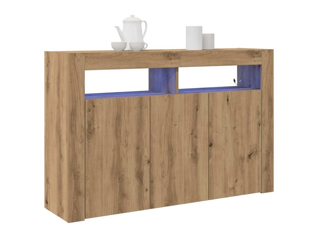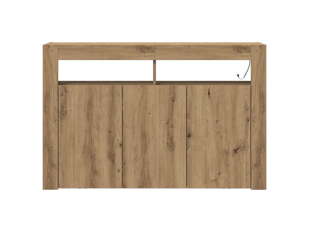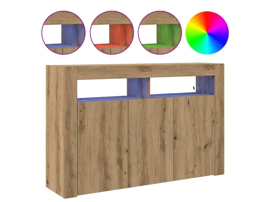 Tato moderní LED skříň spojuje skvělý design s praktickým úložným prostorem a unikátním osvětlením. Je to ideální kousek do současných interiérů. Její obdélníkový tvar a kompozitní dřevo zajišťují, že se hodí do různých domovů, přičemž nabízí jak funkčnost, tak styl. Vstavané RGB LED pásky dodávají možnost měnit atmosféru podle nálady.
