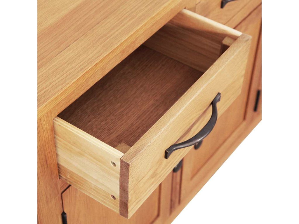 - Masivní dubová konstrukce Bufet je z kvalitního masivního dubového dřeva, které zaručuje odolnost a dlouhou životnost. Jeho robustní konstrukce snáší každodenní používání a dodává vašemu jídelnímu uspořádání nadčasový šarm.