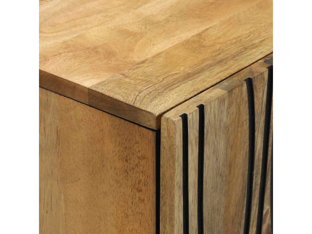 Tahle komoda je funkční a stylový kousek, co obohatí jakýkoli prostor v jídelně nebo obývaku. Je vyrobená tak, aby vynikla svou přírodní krásou, spojuje masivní mangové dřevo s komponenty z konstruovaného dřeva, což zaručuje skvělý vzhled i praktickost. Její příjemný design doplňují hladké linie a obdélníkový tvar, což jí dává rustikální eleganci, ať už ji dáte kamkoli, takže je skvělá pro ty, co hledají kombinaci tepla a funkčnosti.