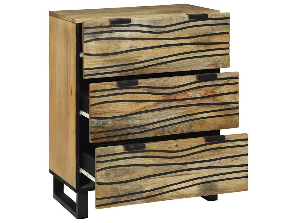 - Pevná konstrukce: Tato skříň z masivního magnovníkového dřeva je silná a spolehlivá. Přírodní textura dodává rustikální šmrnc, který ji odlišuje v jakékoli místnosti.