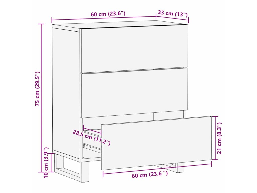 - Celkové rozměry: 60 x 33.5 x 75 cm (D x Š x V)