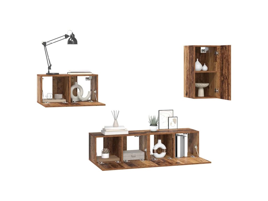 Sestava TV skříněk Nástěnný 4 pcs Staré dřevo kompozitní dřevo 3393297