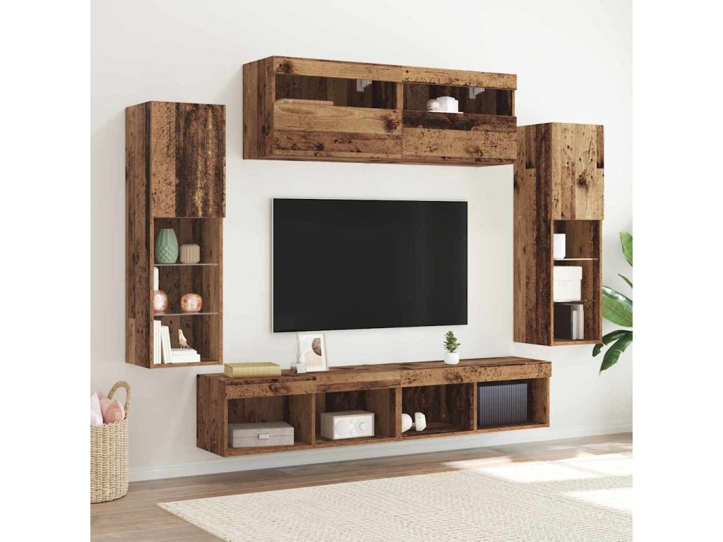Sestava TV skříněk Nástěnný 6 pcs Staré dřevo Kompozitní dřevo 3334380