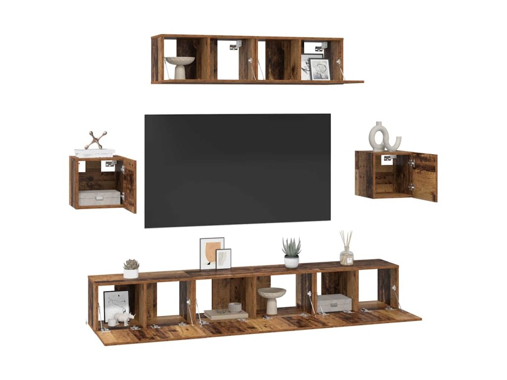 Sestava TV skříněk Nástěnný 7 pcs Staré dřevo kompozitní dřevo 3393408