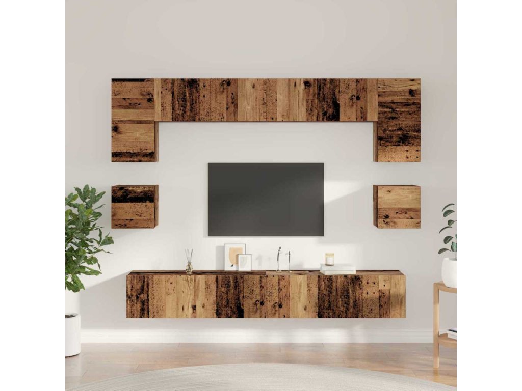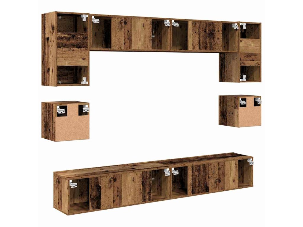 Sestava TV skříněk Nástěnný 8 pcs Staré dřevo kompozitní dřevo 3393321