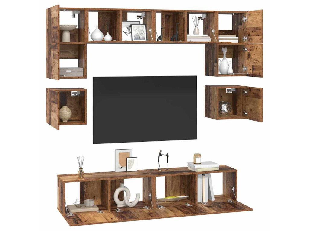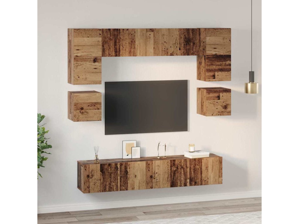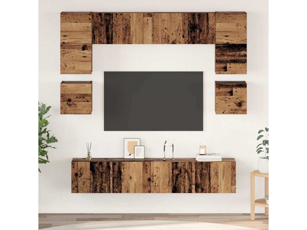 Sestava TV skříněk Nástěnný 8 pcs Staré dřevo kompozitní dřevo 3393333