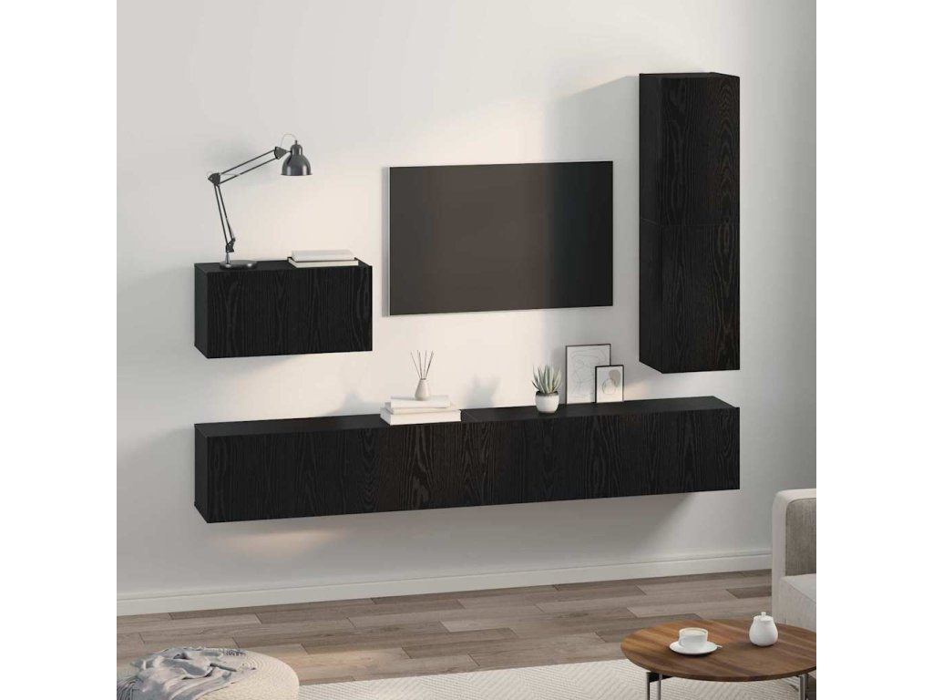 Sestava TV skříněk se zásuvkou 4 pcs Černý dub kompozitní dřevo 3393328