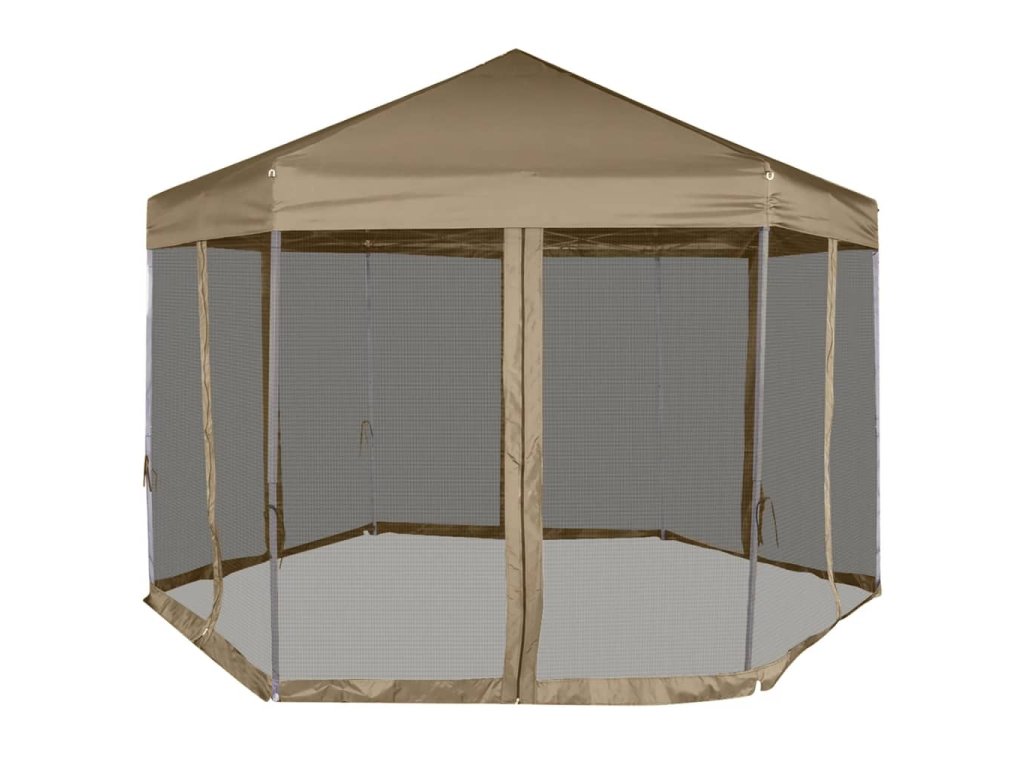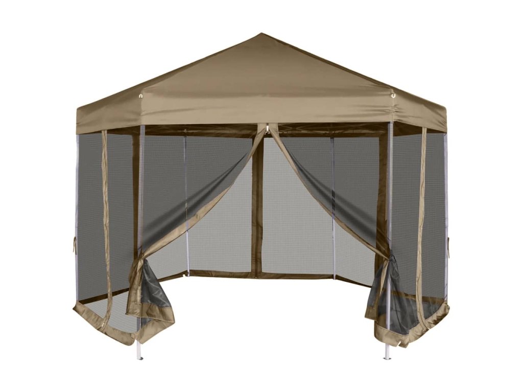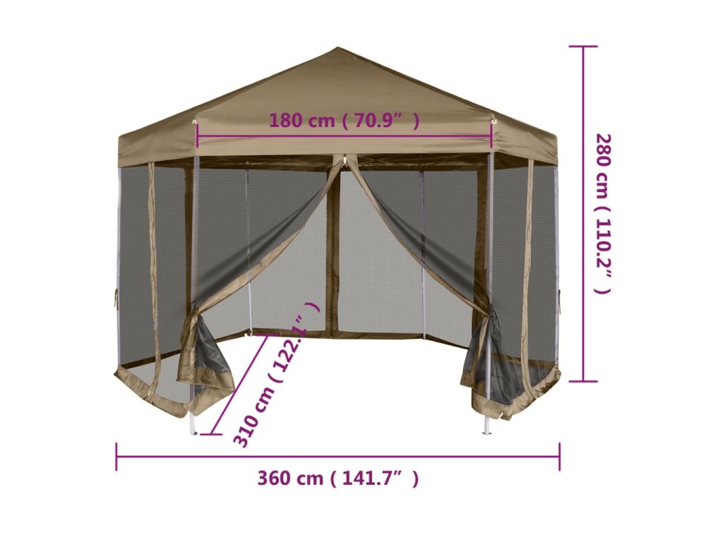 Šestihranný pop-up stan s bočnicemi 3,6 x 3,1 m taupe 220 g/m² 362013