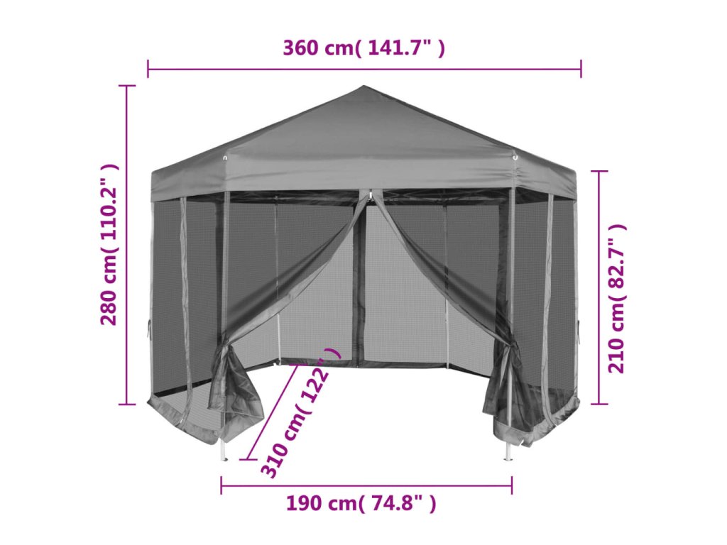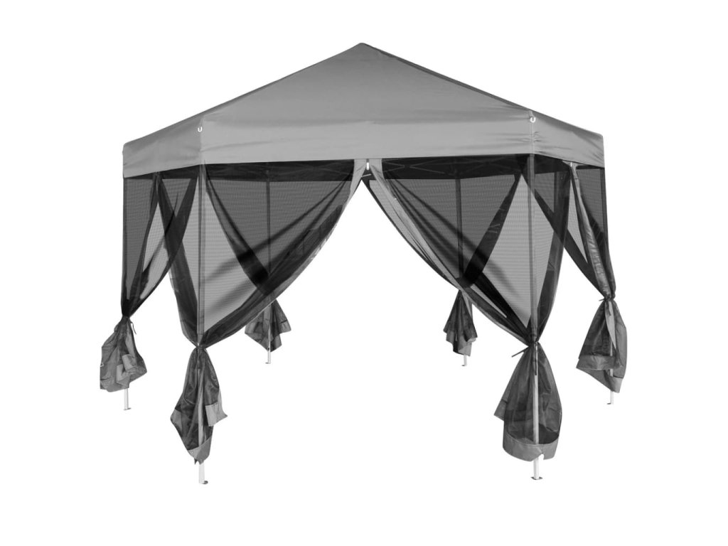 Šestiúhelníkový party stan s 6 stěnami šedý 3,6 x 3,1 m 42111