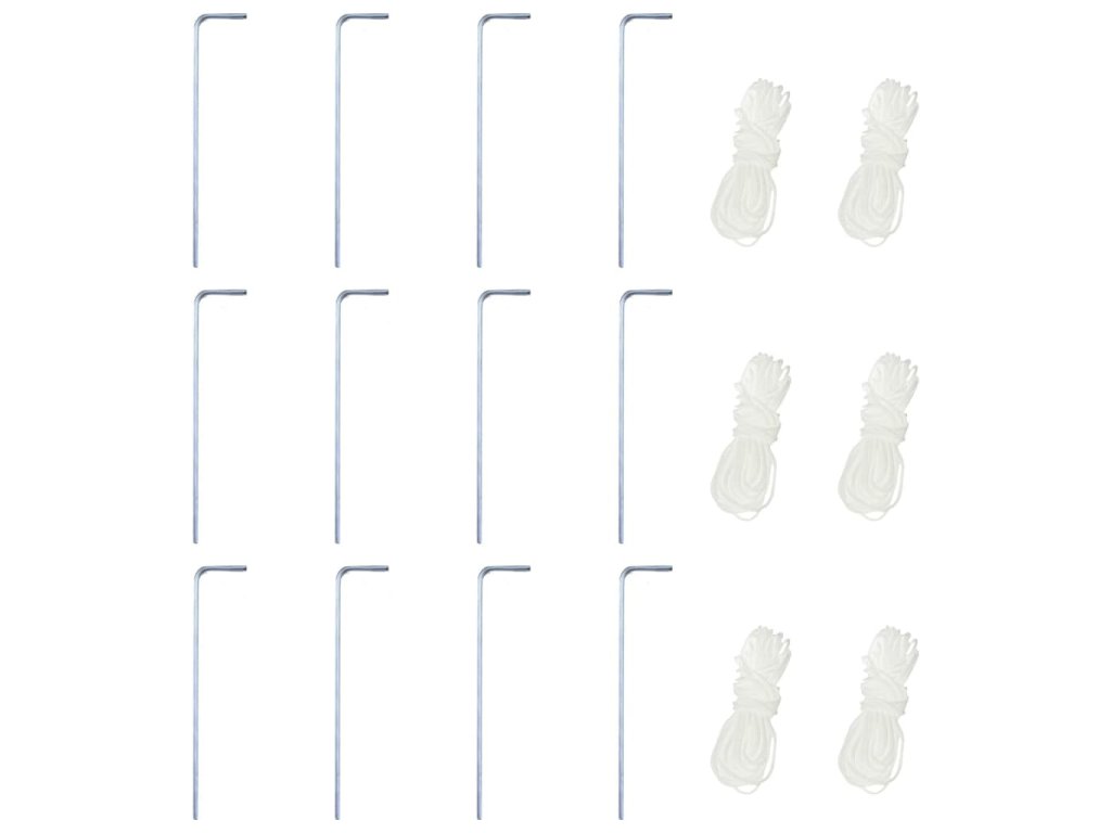 - Součástí balení jsou také vázací lanka a kolíky k upevnění do země
