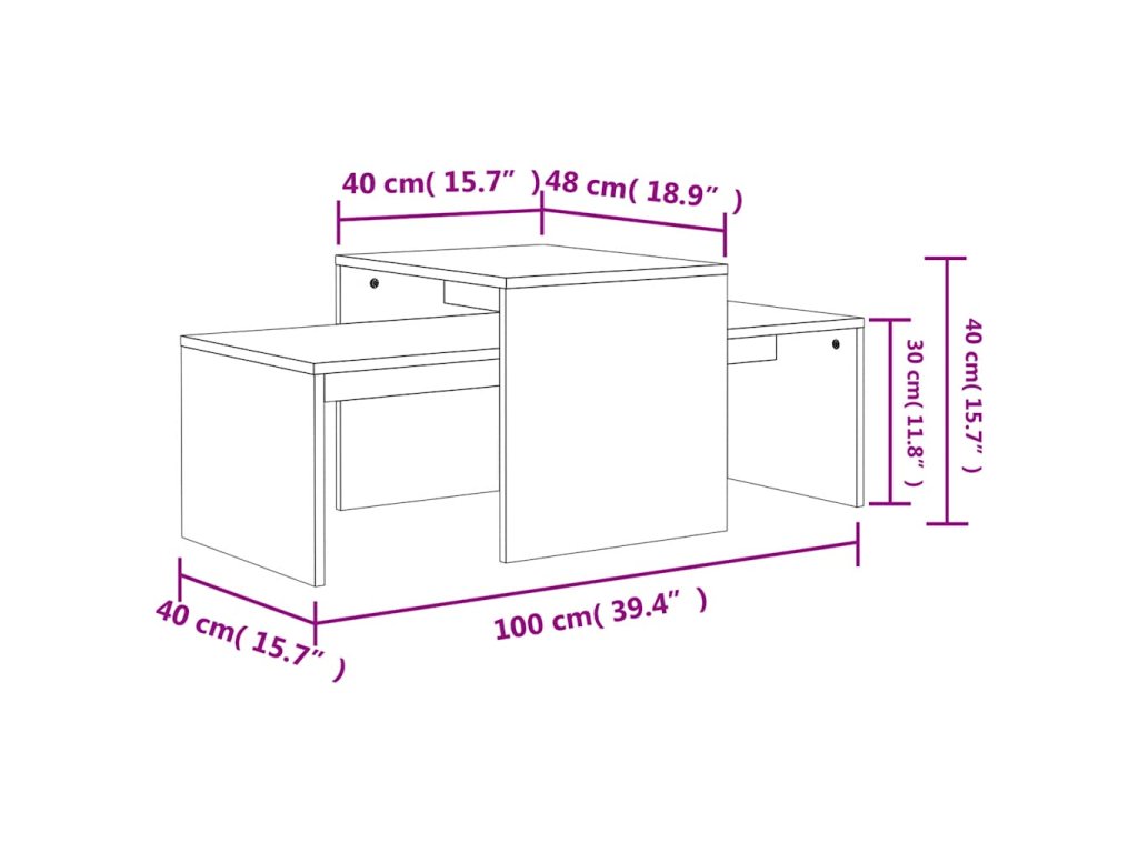 - Rozměry nižšího stolku: 100 x 40 x 30 cm (D x Š x V)