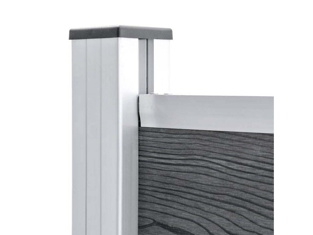 - Materiál: WPC (dřevoplast), hliník, ocel