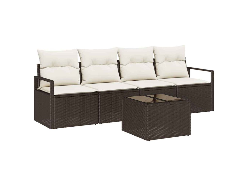 Set pohovek 5 pcs Hnědá a krémová polyratan 3346248