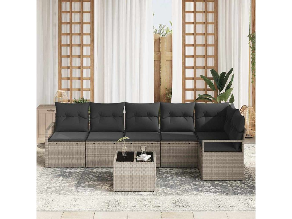 Set pohovek 7 pcs Světle šedá polyratan 3346412