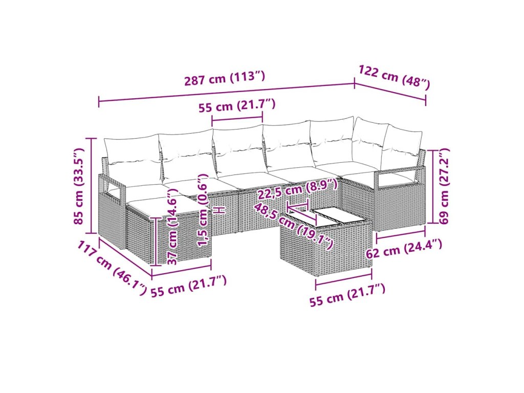 Set pohovek 8 pcs Béžová polyratan 3346481