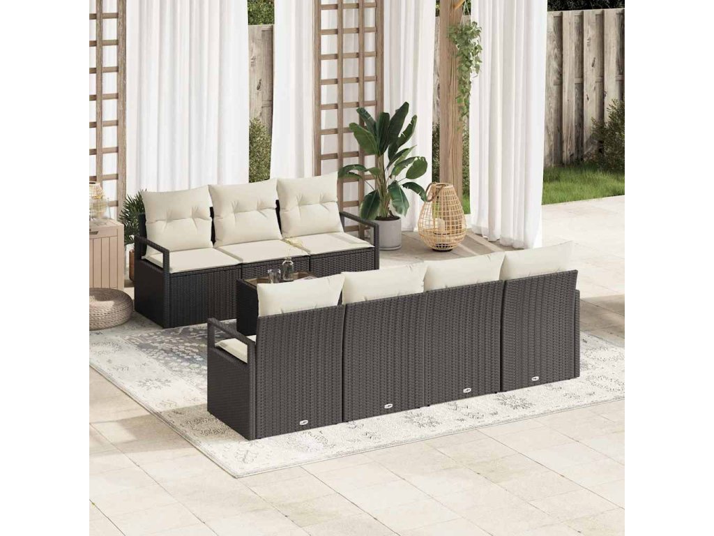 Set pohovek 8 pcs Černá a krémová polyratan 3346287