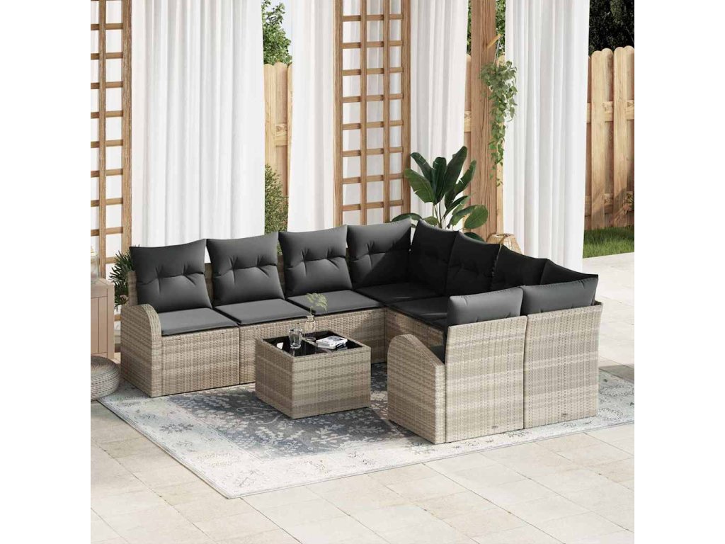 Set pohovek 9 pcs Světlá šedá a tmavá šedá polyratan 3354651