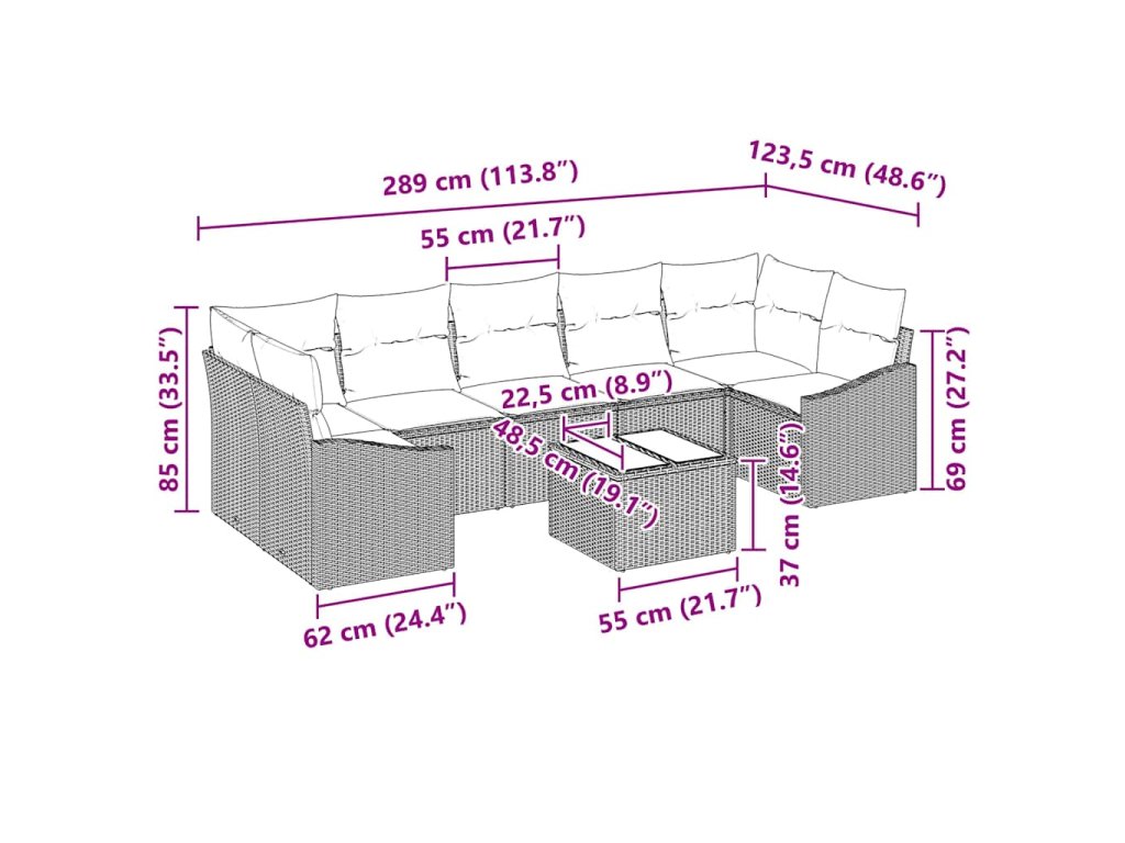 - Spousta komponentů: Vybaveno vším, co potřebuješ – polštáře s polyesterem a zipem pro snadnou údržbu. Stylová zadní konstrukce dodává estetiku a pohodlí.