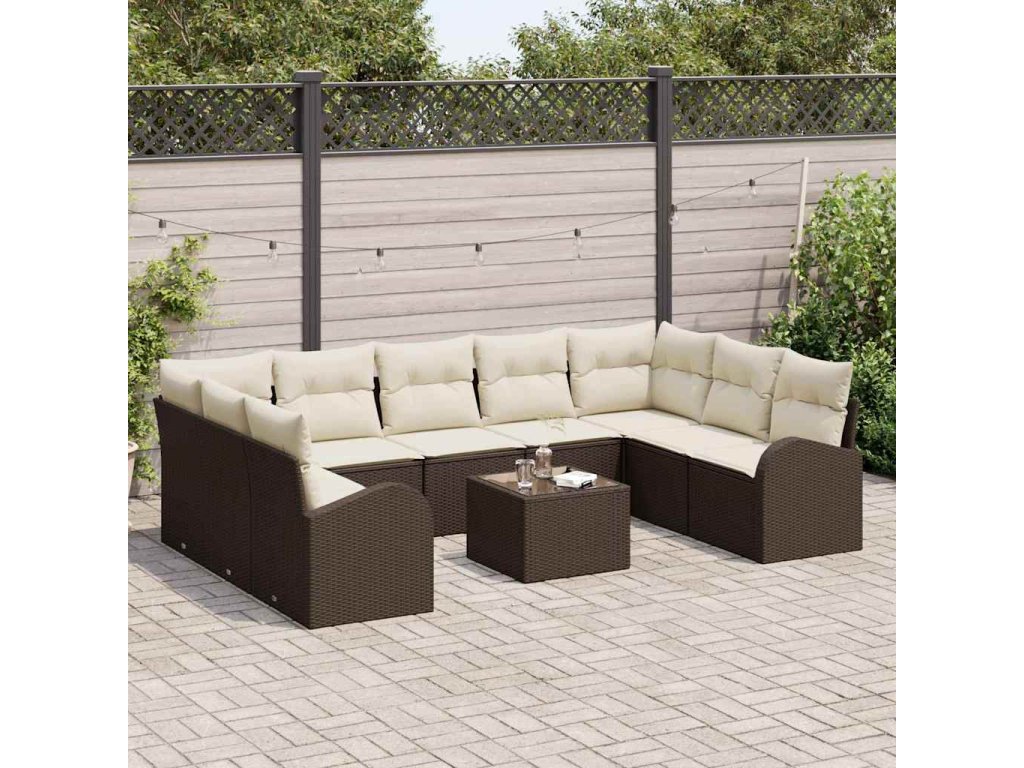 Set pohovek s polštářem 10 pcs Hnědá a bílá polyratan 3354877