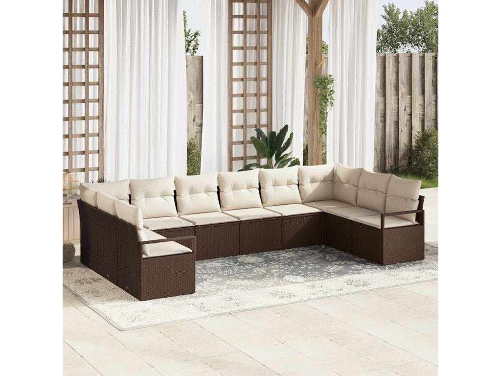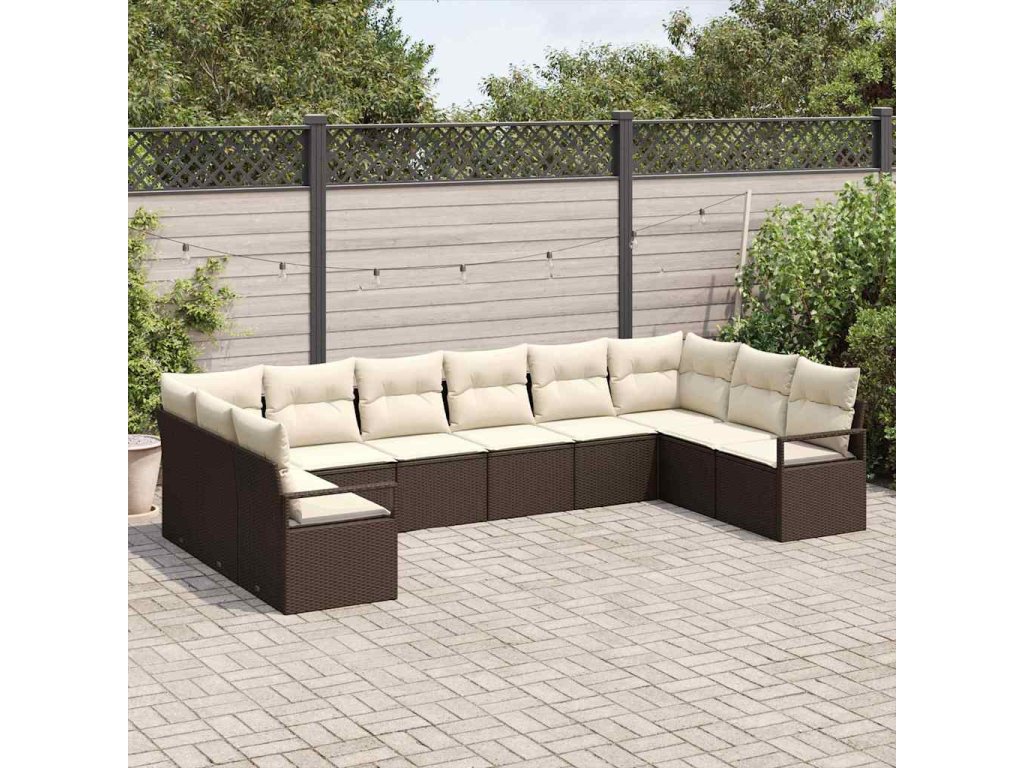 Set pohovek s polštářem 10 pcs Hnědá polyratan 3346558