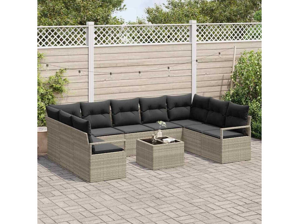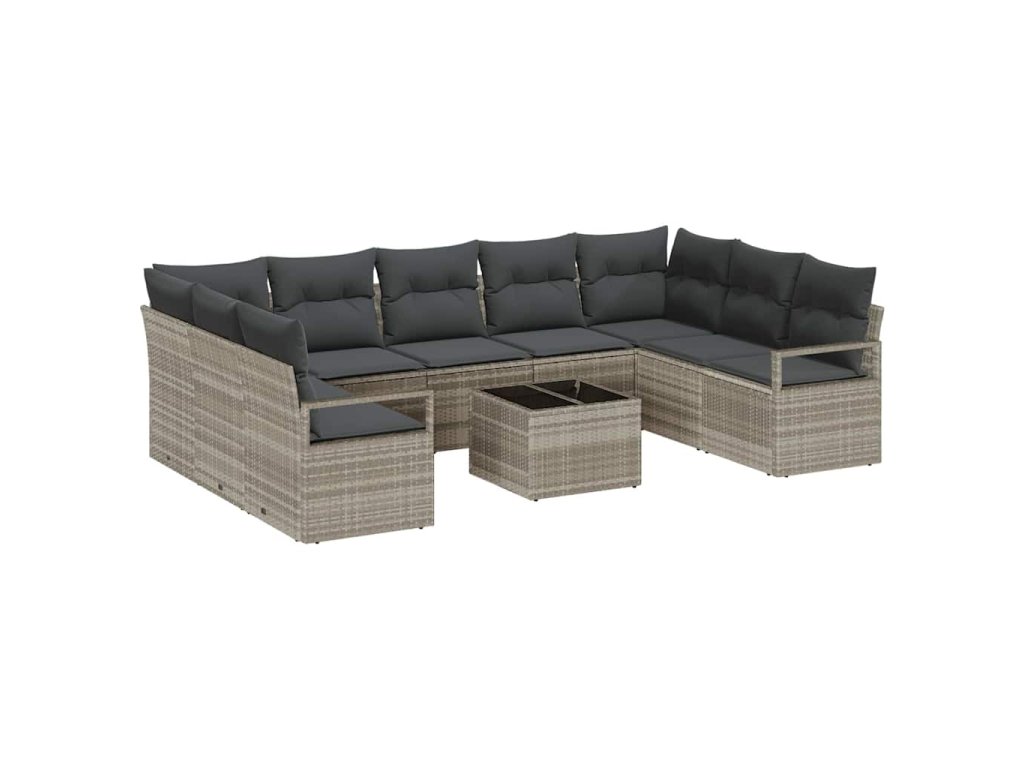 Set pohovek s polštářem 10 pcs Světle šedá polyratan 3346552