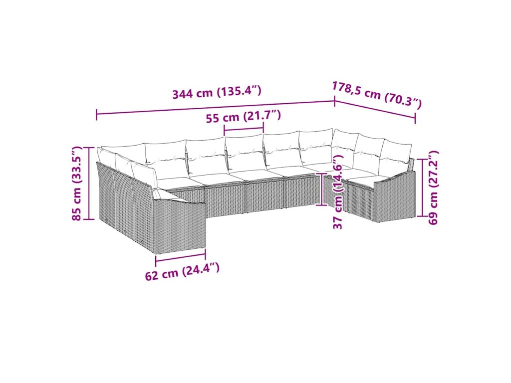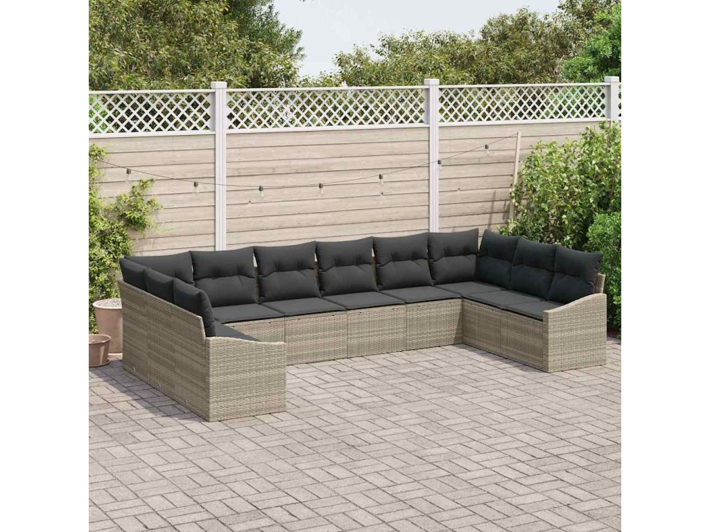 Set pohovek s polštářem 10 pcs Světle šedá polyratan 3346902