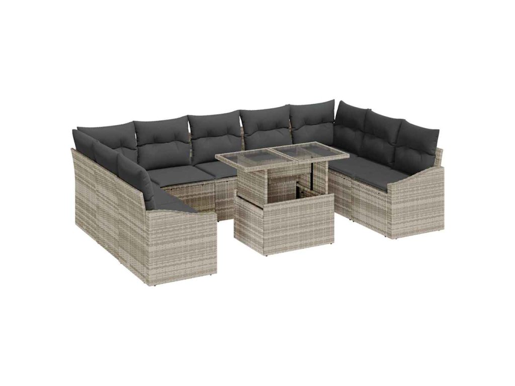 Set pohovek s polštářem 10 pcs Světle šedá polyratan 3349068