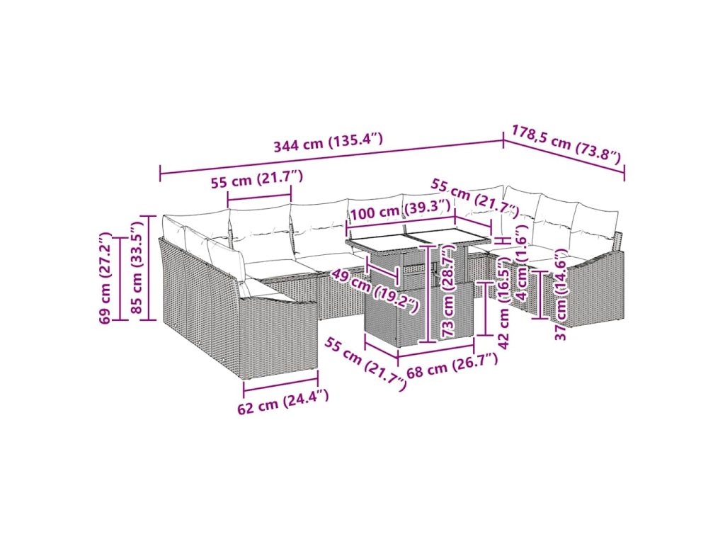 - Multifunkční vlastnosti: Díky nastavitelnému stolku se pohovka snadno mění z konferenčního na jídelní stůl, což ji dělá přizpůsobivou pro různé akce. Výškově nastavitelné sedáky umožňují upravit si sezení na míru, takže si užijí rodina i přátelé.