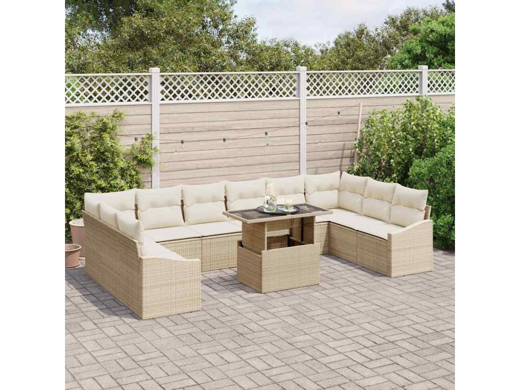 Set pohovek s polštářem 11 pcs Béžová a krémová polyratan 3349077