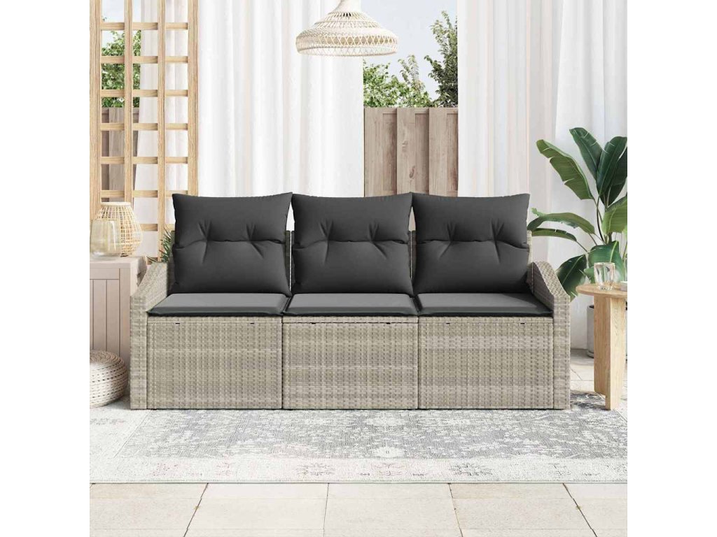 Set pohovek s polštářem 3 pcs Světle šedá polyratan 3346582