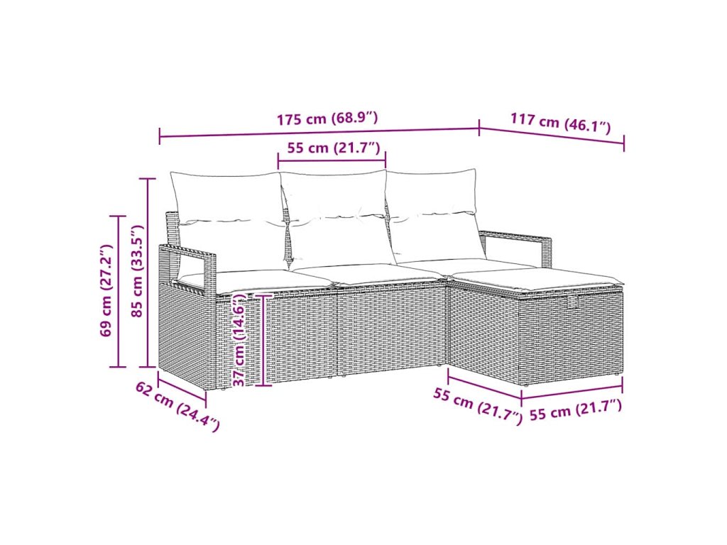 Tento zahradní pohovkový set, určený pro moderní venkovní prostředí, spojuje praktičnost a styl. Jeho minimalistický vzhled s čistými liniemi a neutrálními barvami se skvěle hodí do jakékoli zahrady nebo na terasu. Perfektní pro ty, kdo mají rádi jednoduchost a eleganci, tento set zlepší vaše venkovní prostory a nabídne pohodlné místo k relaxaci nebo společenským událostem.