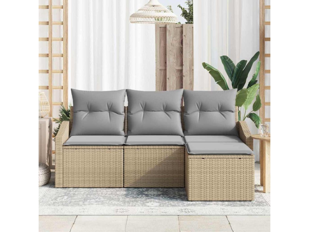 Set pohovek s polštářem 4 pcs Béžová a Světle šedá polyratan 3355339