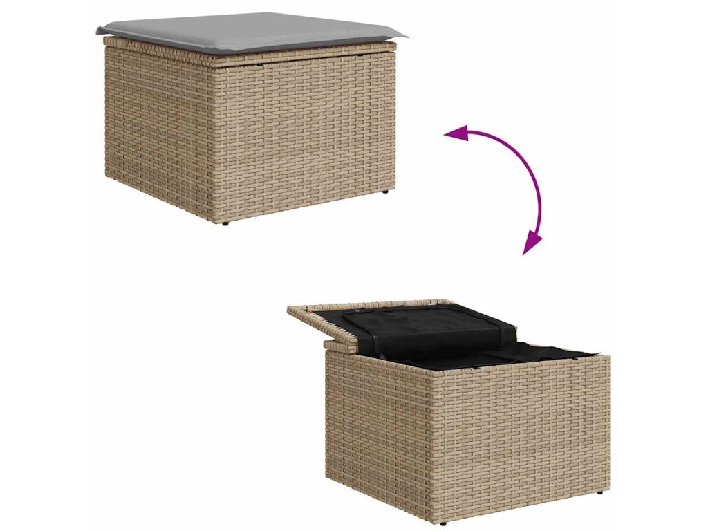 - Všestranné komponenty: Obsahuje polštář se zipem, takže ho snadno sundáš a vypráš. Poly ratan vzadu a na rukou nejen že skvěle vypadá, ale poskytuje i super pohodlí. Skryté úložáky v lavicích a taburetách jsou praktickou volbou pro schování věcí.