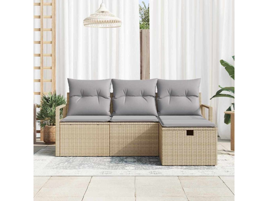 - Integrované úložné prostory: Set má skryté úložné přihrádky, ideální na polštáře nebo jiné osobní věci. Tyto úložné prostory zvyšují praktičnost a udržují váš venkovní prostor uklizený a organizovaný.