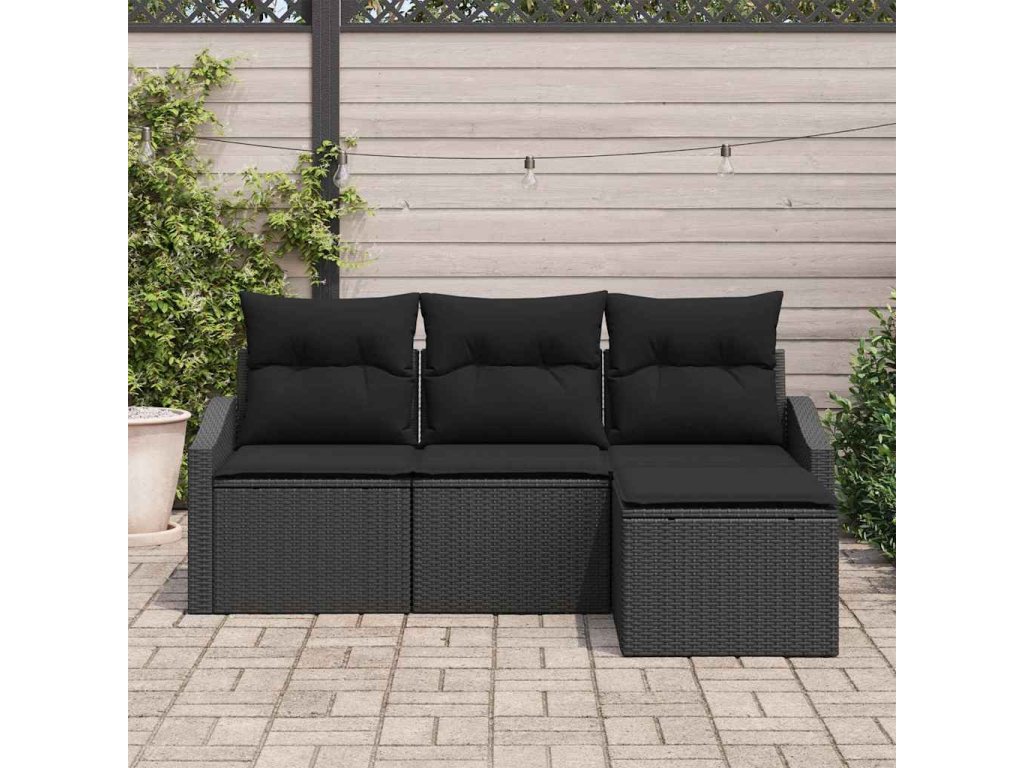 Set pohovek s polštářem 4 pcs Černá polyratan 3346673