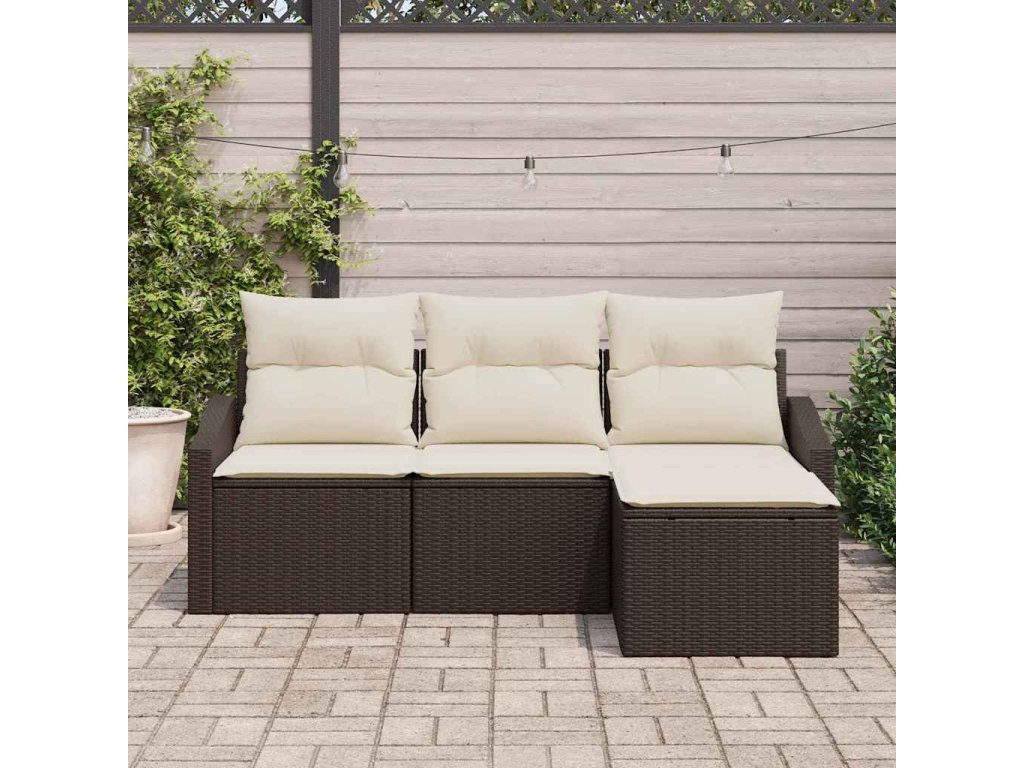 Set pohovek s polštářem 4 pcs Hnědá polyratan 3346668