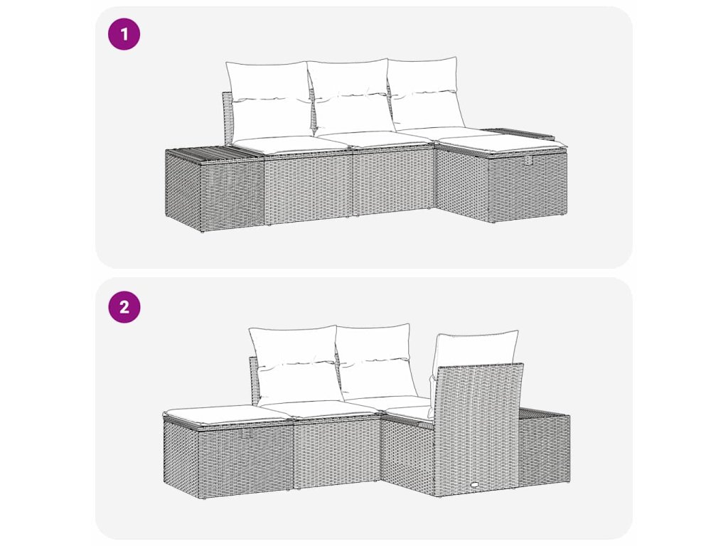 - Univerzální funkčnost: Díky modulárnímu designu můžete soupravu snadno přizpůsobit různým situacím nebo vkusu. Lehký polyratan a ocelová konstrukce vám umožní rychlé přemístění, což usnadňuje uspořádání.